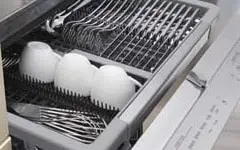 TrueSteam™ made by boiling water reaches the entire surface of every dish inside the tub resulting in sparkling clean dishes. Pure water particles of steam also help reduce water spots.